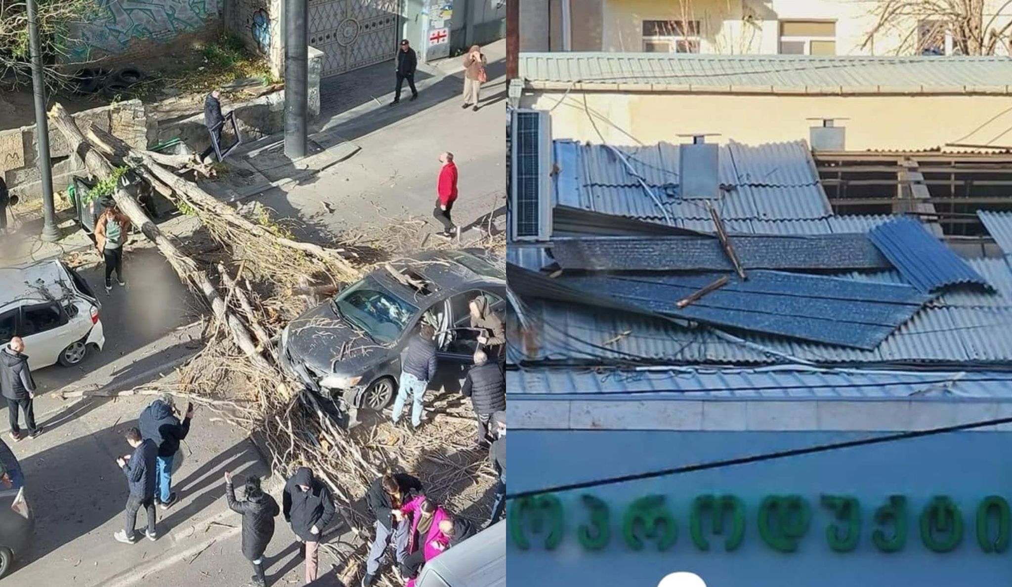 “ეცადეთ, არ გახვიდეთ ფეხით” – ძლიერი ქარის შედეგად დედაქალაქში წაქცეულია ხეები და გადახდილია სახურავები