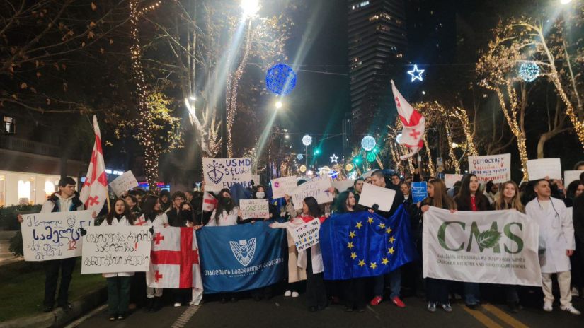 თბილისში, ჭავჭავაძის გამზირზე მომავალი ექიმების მარში მიმდინარეობს.