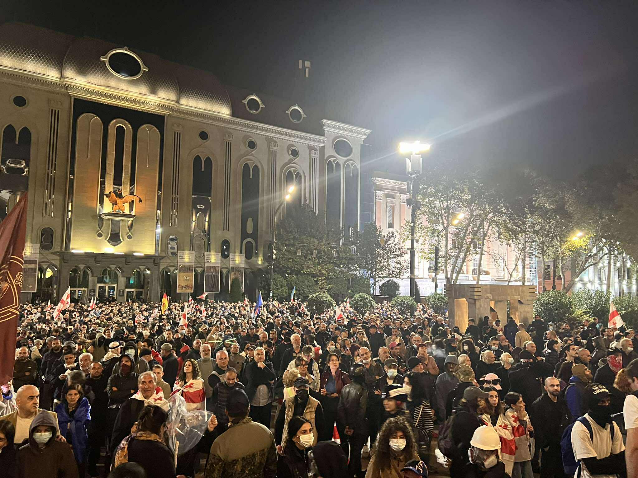 ორბელიანის სასახლის მიმდებარე ტერიტორიიდან დარბეული აქციის მონაწილეები რუსთაველისკენ გაემართნენ, სადაც ამ წუთებში პროტესტი მიმდინარეობს.
