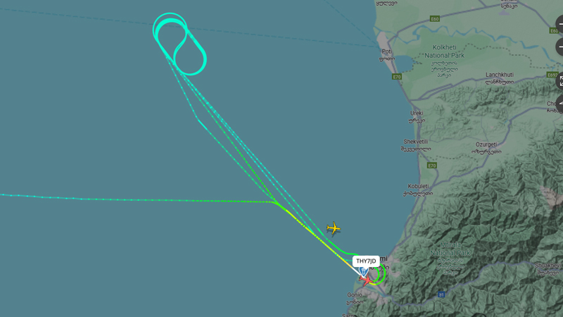 სტამბოლი-ბათუმის თვითმფრინავი [THY7JD] დღეს, 29 ოქტომბერს, მესამე მცდელობაზე დაჯდა დაახლოებით 17:57 საათზე.