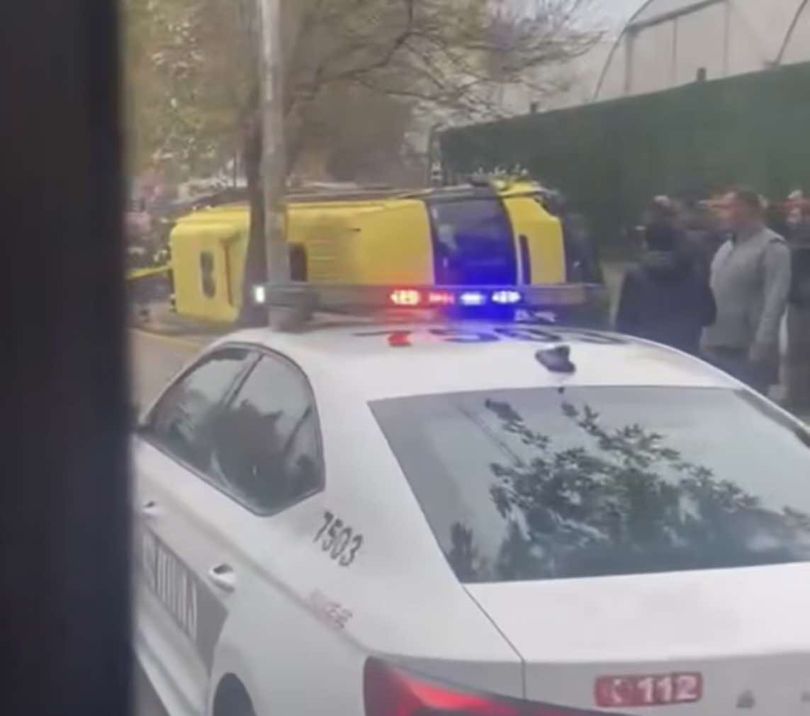 სამგორის მეტროს მიმდებარედ გადაბრუნდა მიკროავტობუსი.
