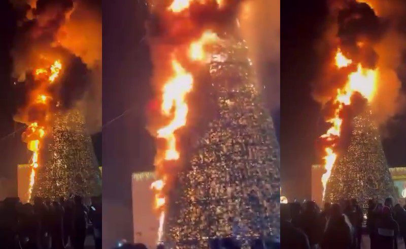 გარდაბანში საზეიმო ვითარებაში ანთებულ ნაძვის ხეს ცეცხლი გაუჩნდა.