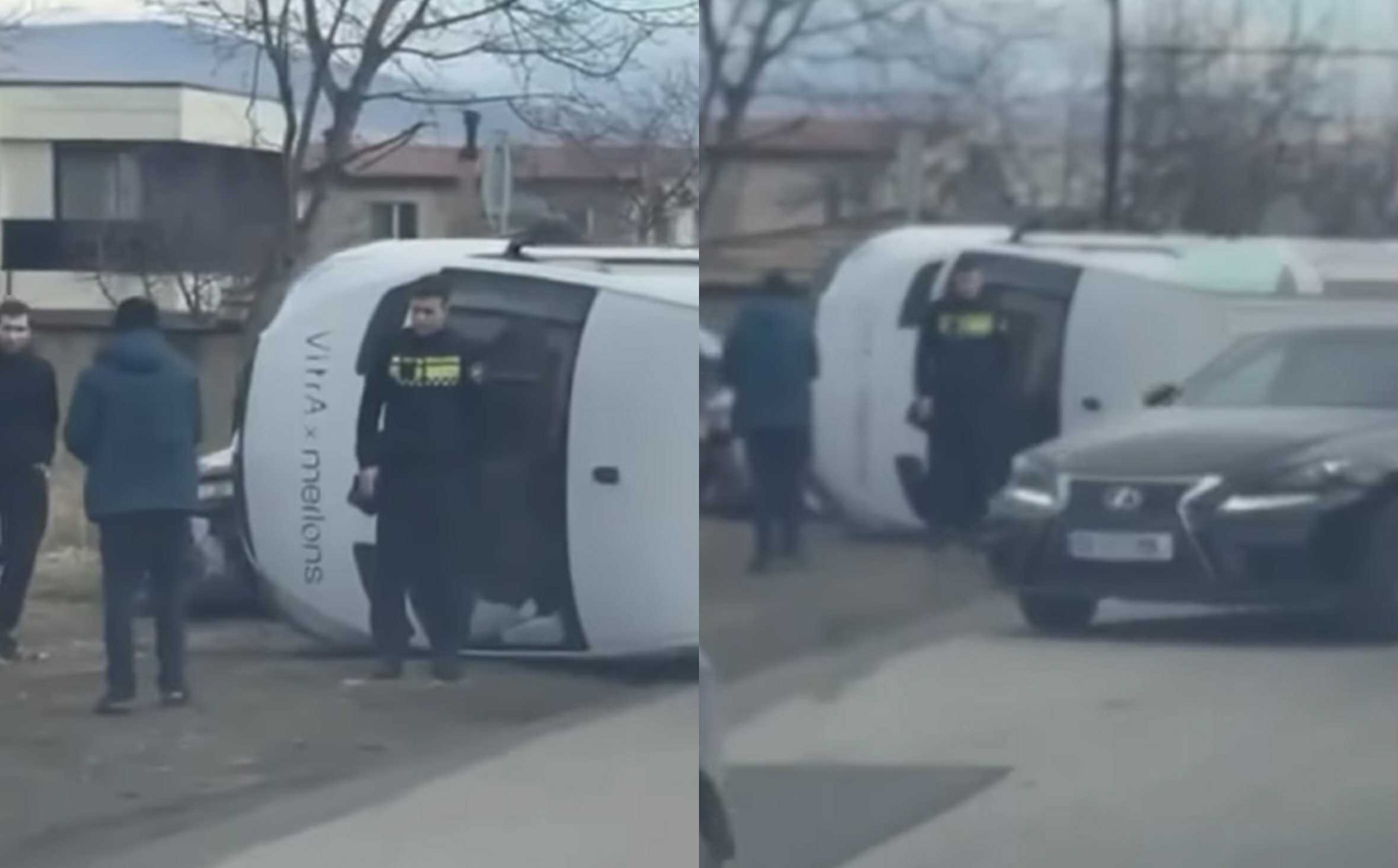 თბილისში მიკროავტობუსი ამობრუნდა – რა კადრები ვრცელდება ადგილიდან