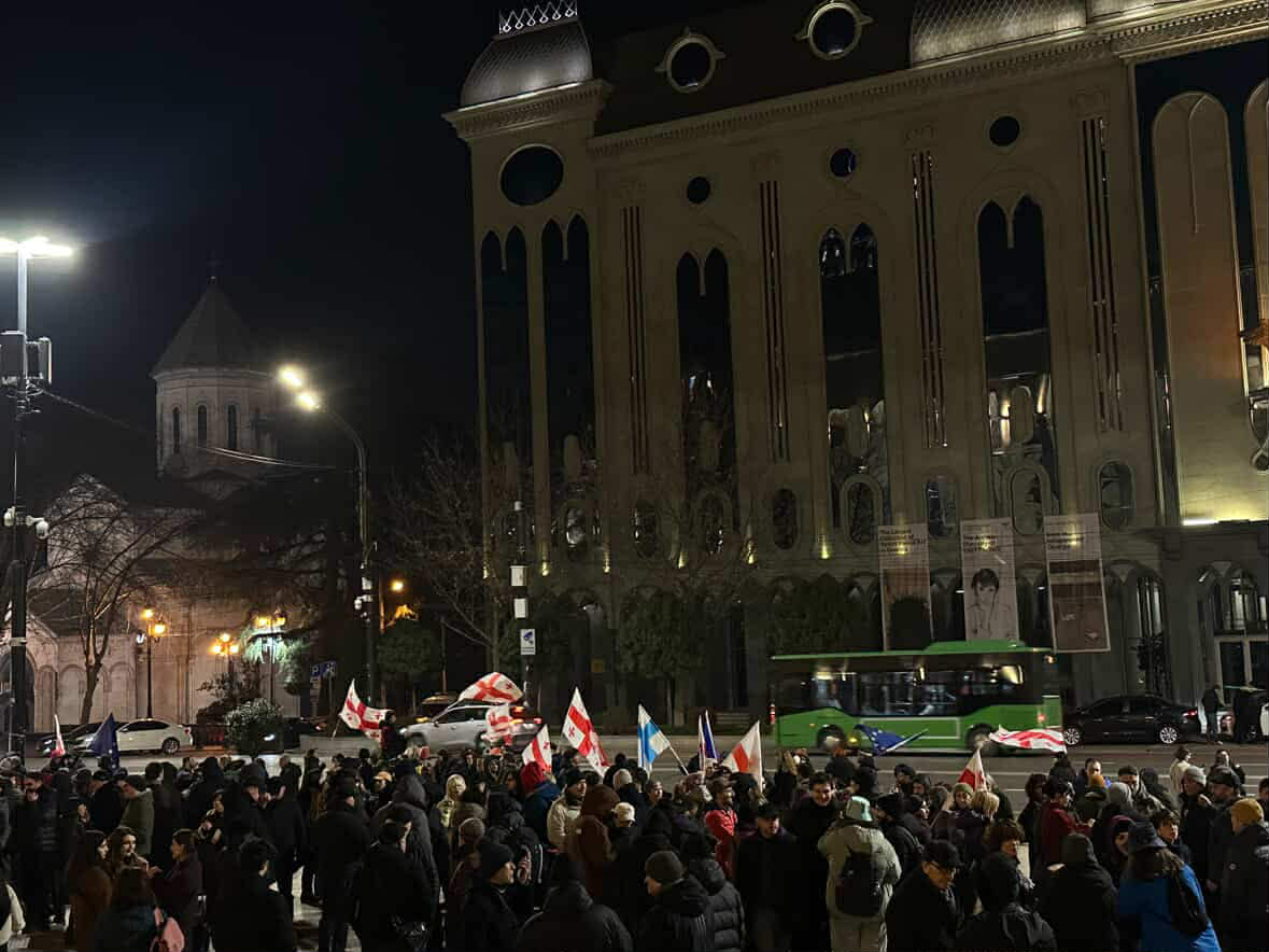 თბილისის სახელმწიფო უნივერსიტეტთან შეკრებილი მოქალაქეები მარშით რუსთაველის გამზირზე მივიდნენ და საპროტესტო აქციას შეუერთდნენ.
