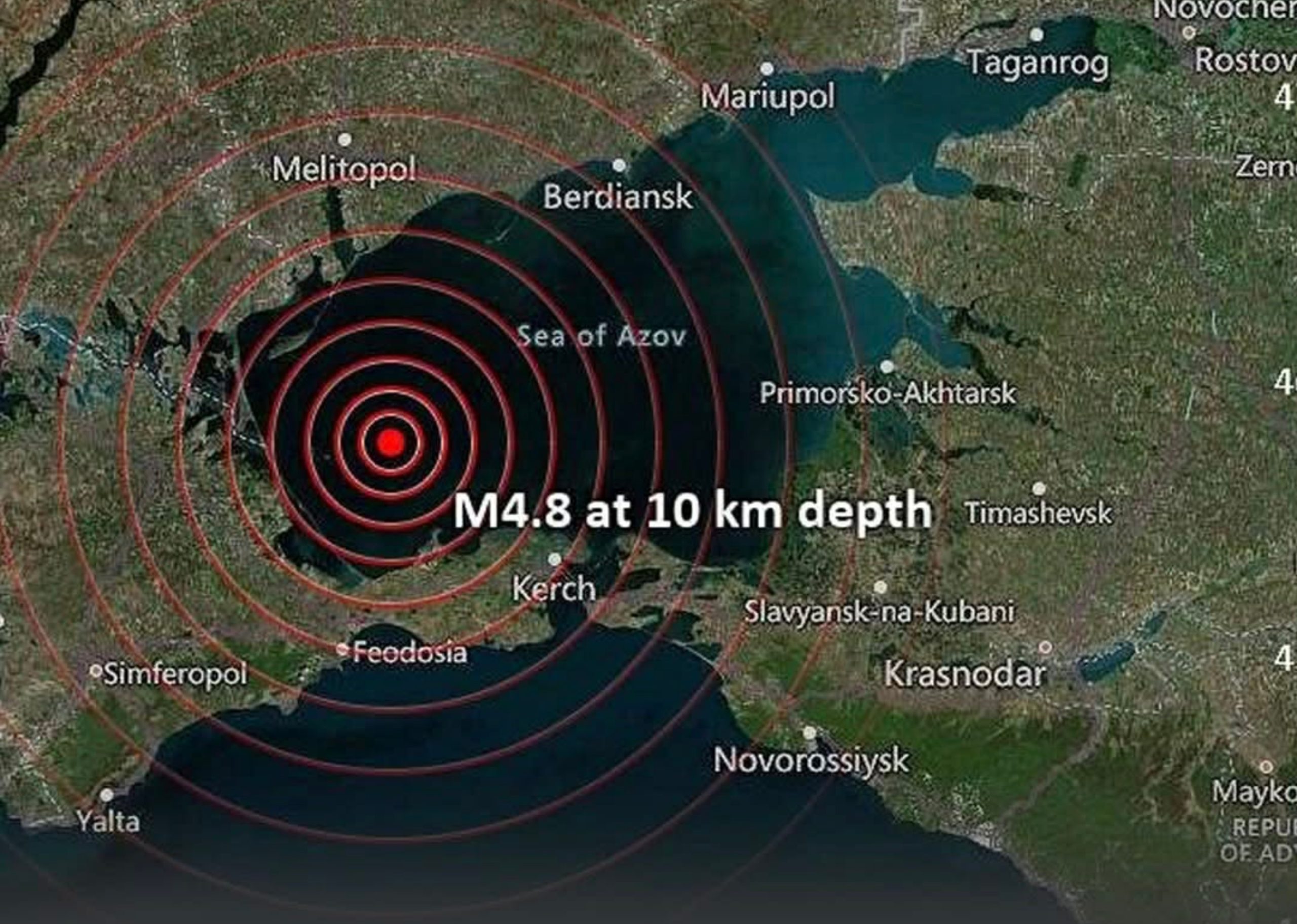 ანექსირებულ ყირიმში 4.8 მაგნიტუდის მიწისძვრა მოხდა. ეპიცენტრი ქერჩიდან დაახლოებით 80 კილომეტრში, აზოვის ზღვაში მდებარეობდა. Telegram-არხებზე გავრცელებული ინფორმაციით, ბიძგები იგრძნობოდა დნეპროპეტროვსკის, ზაპოროჟიესა და დონეცკის ოლქებში.
