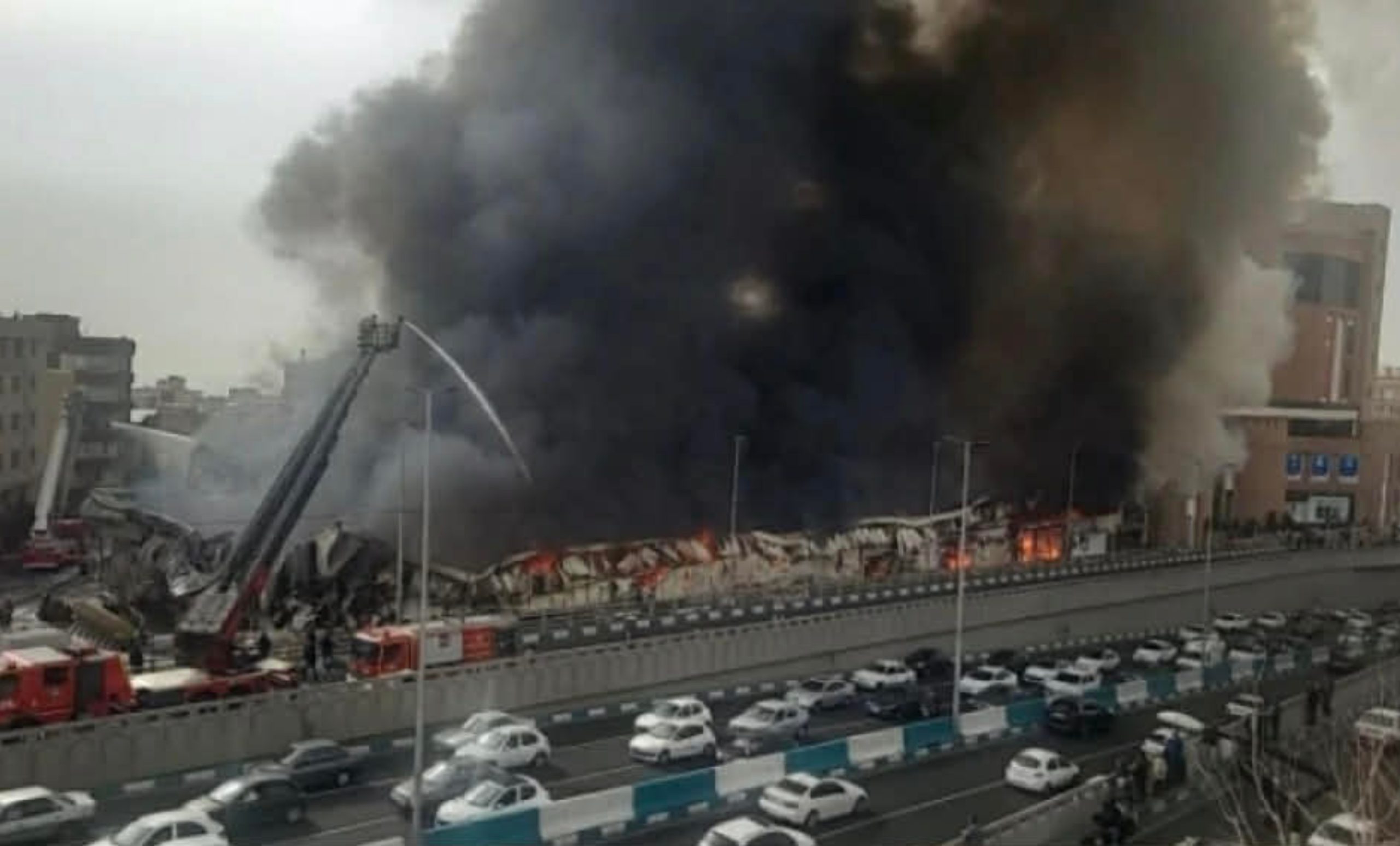 ირანის დედაქალაქში მასშტაბური ხანძარია – ცეცხლი თეირანის ცენტრალურ ნაწილში მდებარე ბაზრის ტერიტორიაზე ვრცელდება.