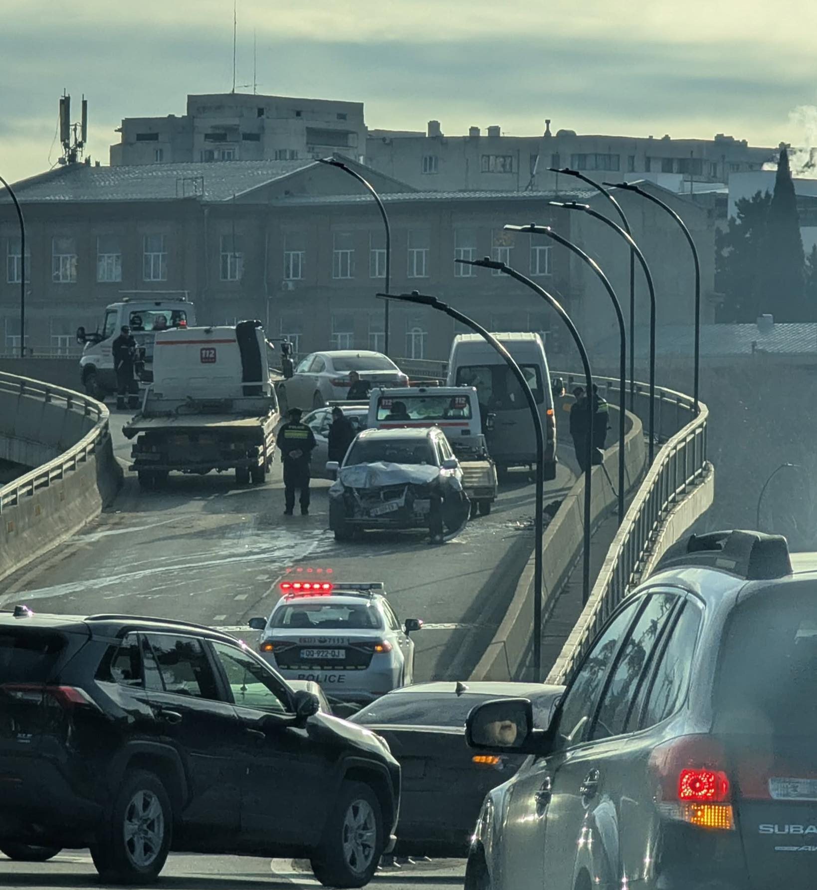 “გმირთა მოედანთან ესტაკადაზე რაც მოგვწერეს საპირისპირო მიმართულებით შევიდა ავტომობილი და მოხდა კიდევ ერთი ავტოსაგზაო შემთხვევა.