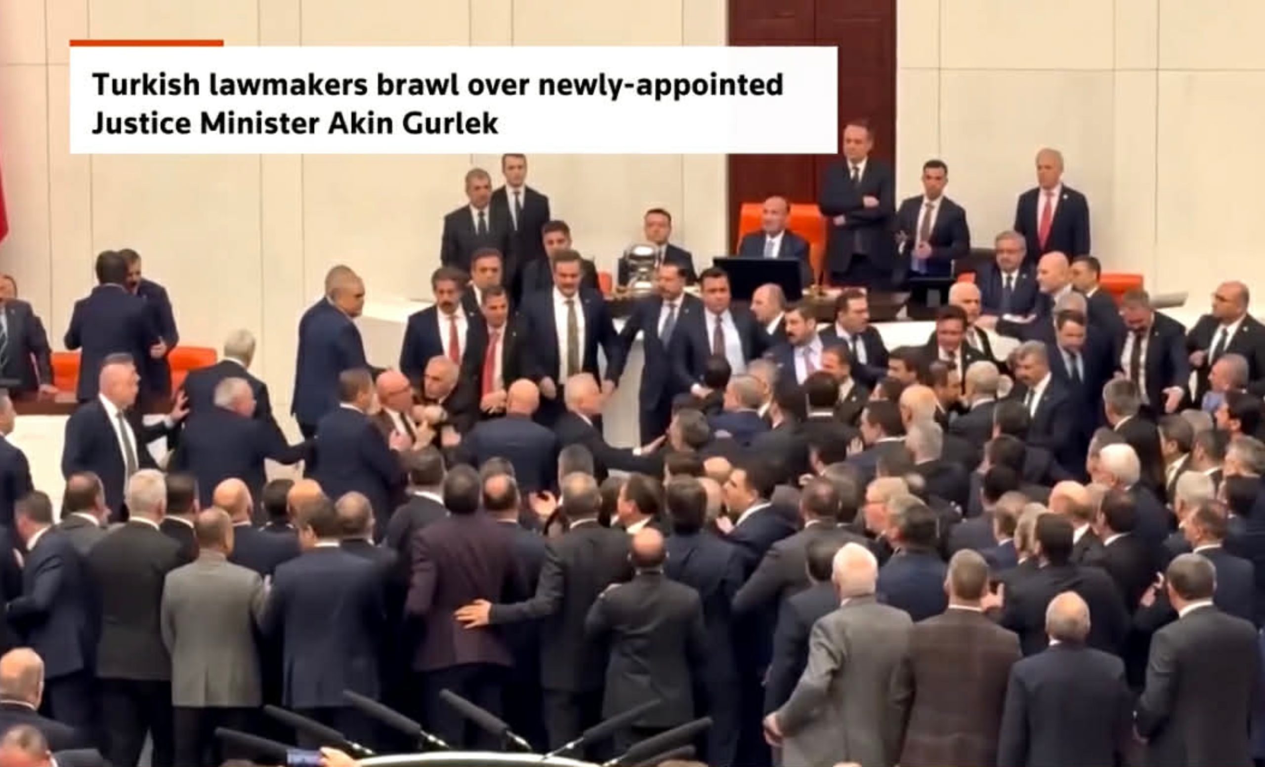 ფიზიკური დაპირისპირება თურქეთის პარლამენტში. მთავარი ოპოზიციური პარტიის წევრები შეეცადნენ, ახლად დანიშნული იუსტიციის მინისტრის ფიცის დადების ცერემონია ჩაეშალათ.