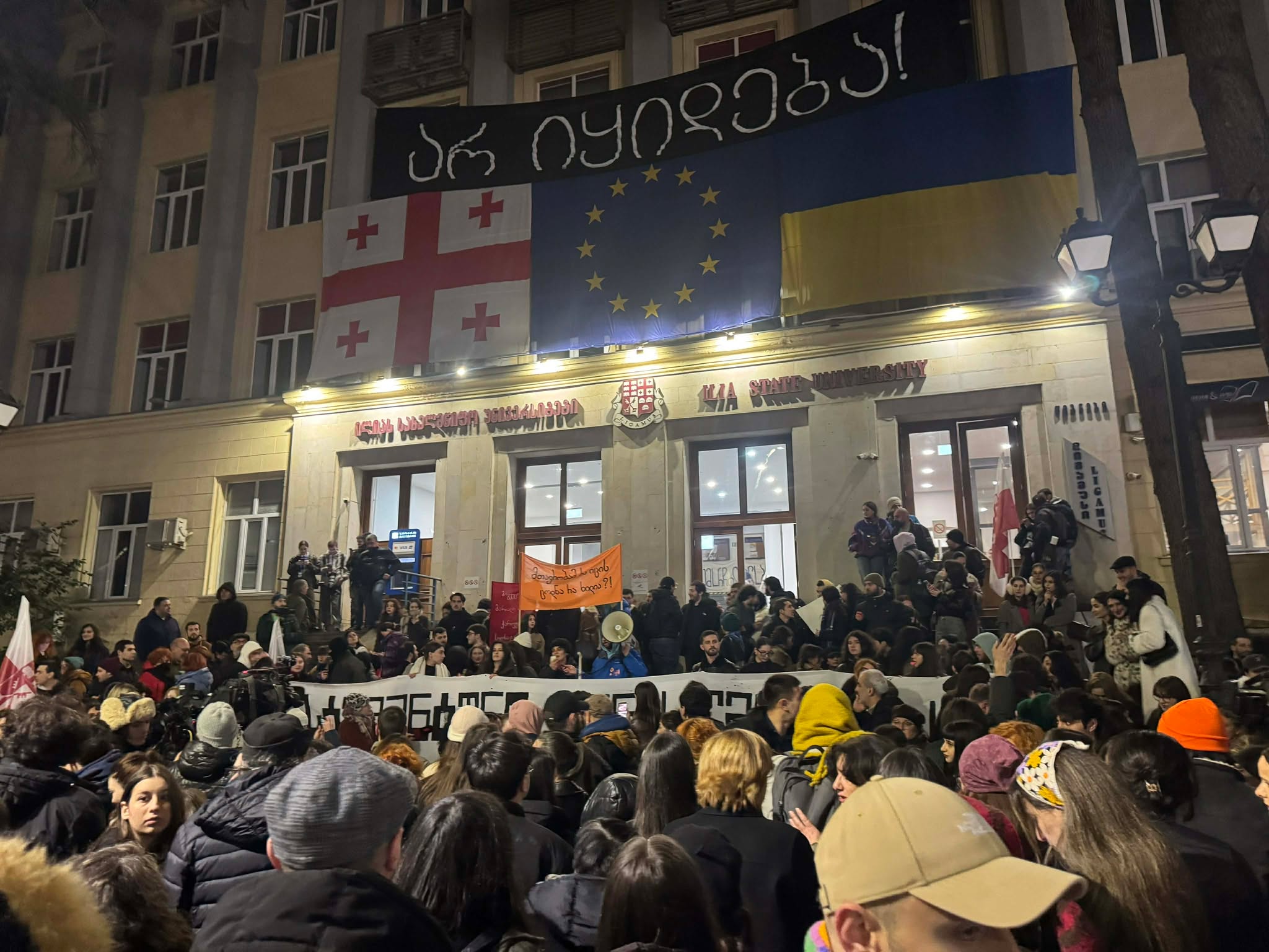 ილიას სახელმწიფო უნივერსიტეტთან საპროტესტო აქცია “წინააღმდეგობა რეჟიმს” მიმდინარეობს.