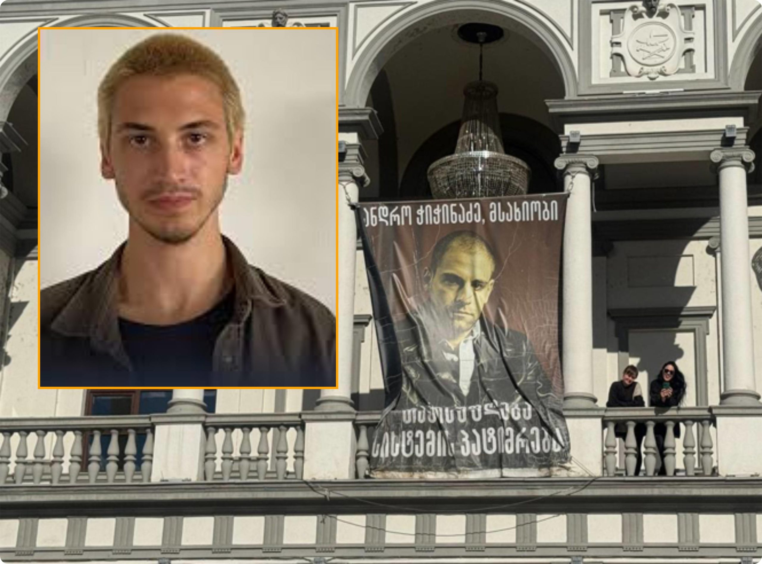 ცნობისთვის, 20 თებერვალს, აბაშიძის თეატრის ფასადიდან ჩამოხსნეს პატიმრობაში მყოფი მსახიობის ანდრო ჭიჭინაძის ბანერი.