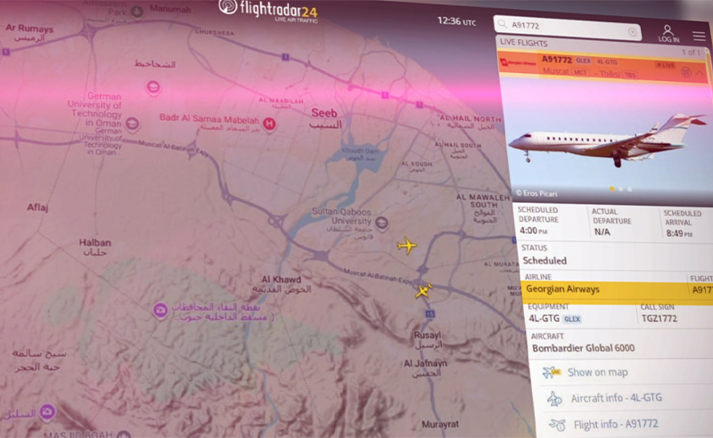 ფლაი – რადარის მონაცემებით, ამ წუთებში საქართველოსკენ გამოსაფრენად, ომანის დედაქლაქის აეროპორტიდან ავიაკომპანია “აირზენას” ბიზნეს ჯერტი ემზადება.