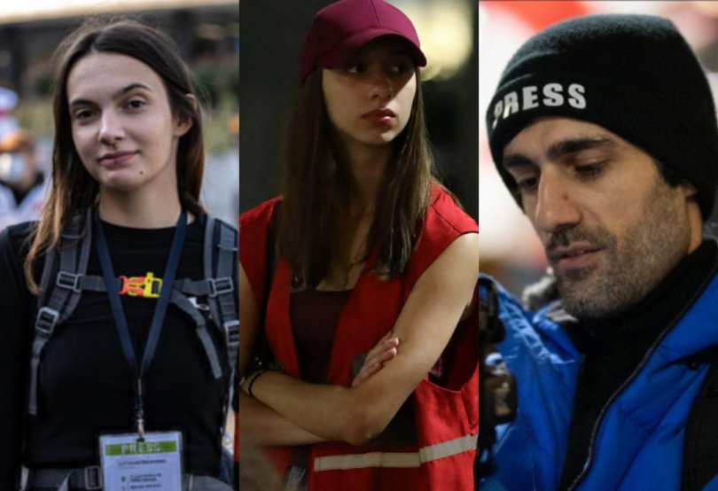 ორივე ჟურნალისტი რუსთაველის გამზირზე პროფესიულ მოვალეობას ასრულდება.