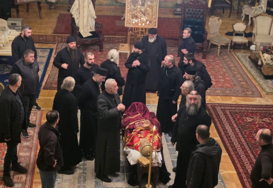 კადრები საპატრიარქოდან, სადაც უწმინდესი და უნეტარესის ცხედარია დასვენებული.