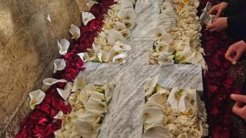 სასულიერო პირების თქმით, ადგილზე ჯერ კიდევ გამაგრებითი სამუშაოები მიმდინარეობს, შესაბამისად, უსაფრთხოებიდან გამომდინარე, მრევლს დროებით არ ექნება უშუალოდ საფლავის ქვასთან შეხების საშუალება.