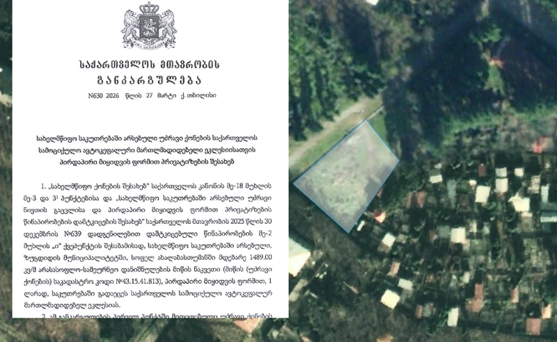 კობახიძის განკარგულებით, საპატრიარქოს ახალაბასთუმანში სახელმწიფო მიწა 1 ლარად გადაეცა