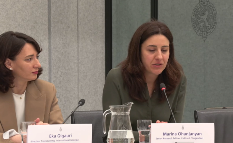 მომხსენებლები არიან “საერთაშორისო გამჭვრივალობა-საქართველოს” აღმასრულებელი დირექტორი, ეკა გიგაური, ევროპული კვლევების დირექტორი, გიორგი რუხაძე და ქლინგენდაელის ინსტიტუტის უფროსი მკვლევარი მარინა ოანჯანიანი.