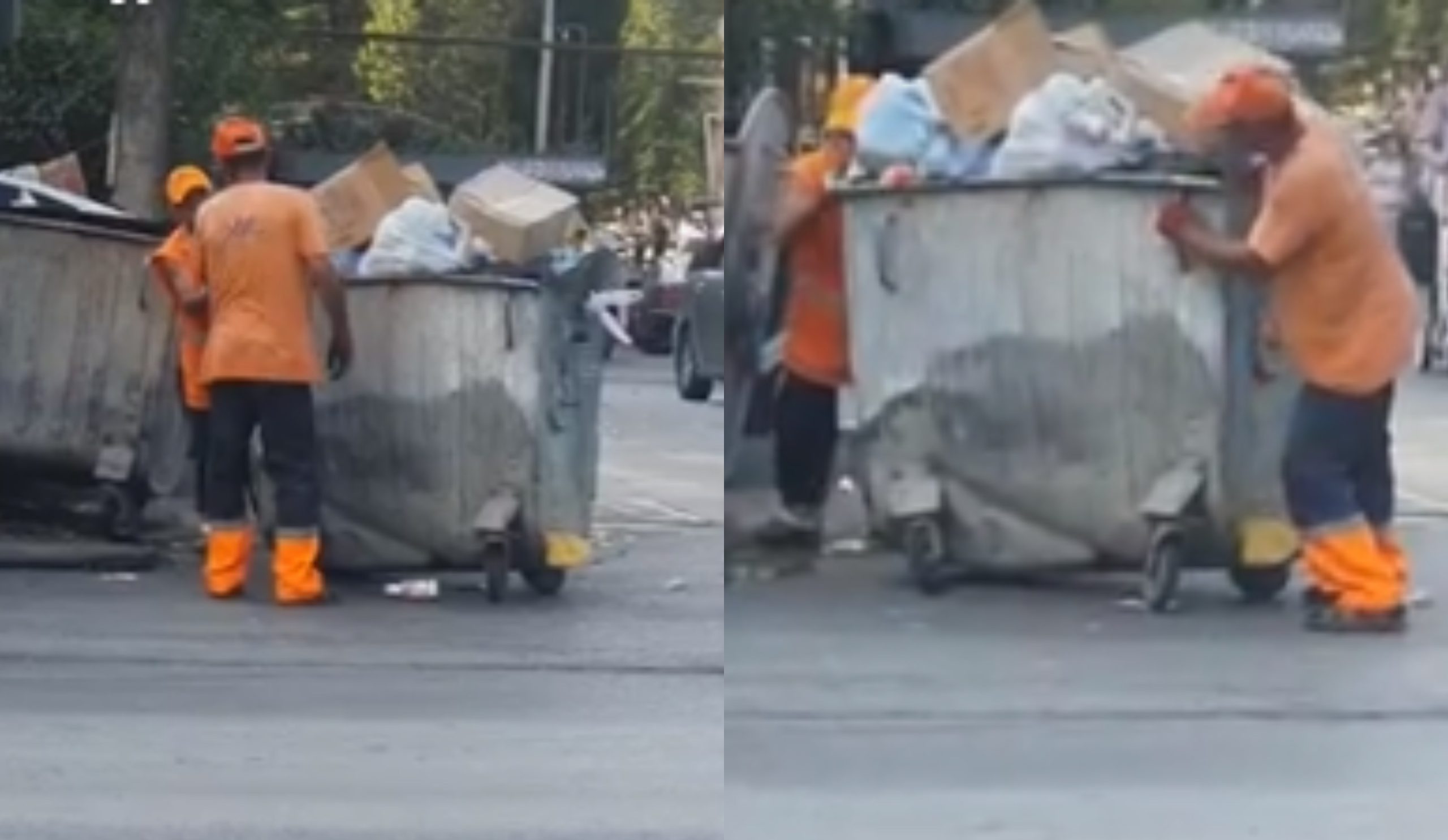 სოციალურ ქსელის ერთ-ერთი მომხმარებელი ავრცელებს ვიდეოს, სადაც დასუფთავების თანამშრომლები უბორბლო ურნებს ეზიდებიან.