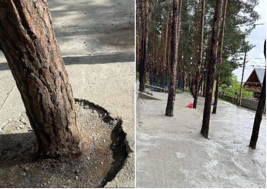 სოციალურ ქსელში Facebook-გვერდმა „ჩემი ქალაქი მკლავს“ გაავრცელა ფოტო სურამიდან, სადაც ჩანს, რომ ნაძვის ხეები დაბეტონებული იყო.